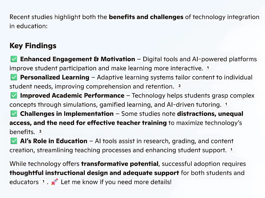 Prompt: Summarize the key findings of recent studies on the impact of technology on student learning outcomes.